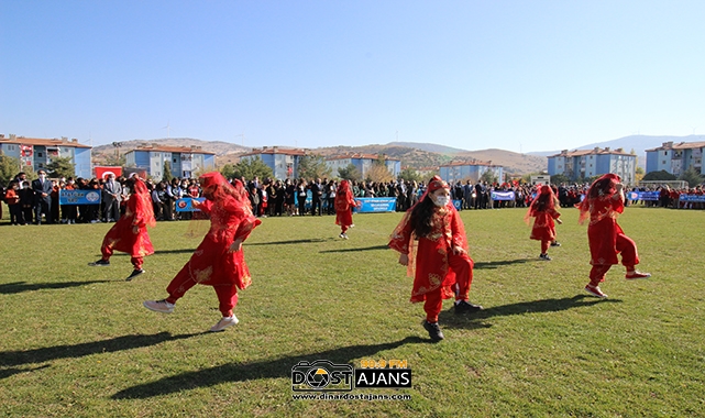 10:30’da başlayan tören de Dinar Kaymakamı Selami Kapankaya ve belediye Başkanı Nihat Sarı halkın ve öğrencilerin bayramını kutladı.