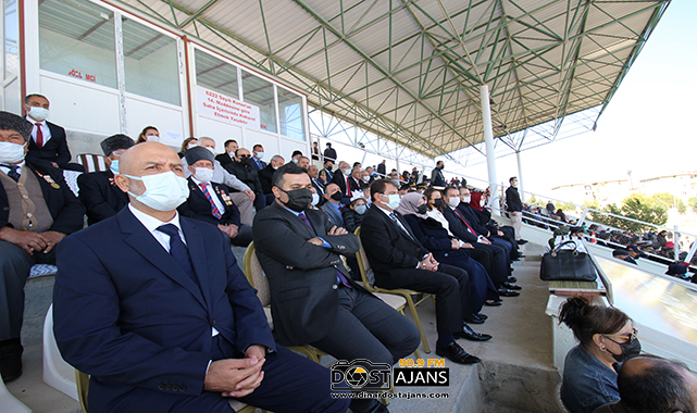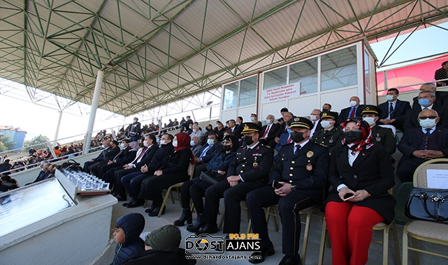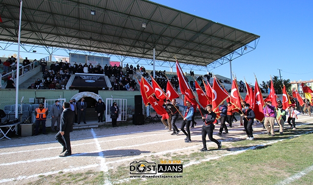 dinar Kaymakamlık makamında ilçe kaymakamı Selami Kapankaya’nın tebrikleri kabul etmesiyle başlayan resmi program daha sonra Şehir Stadyumunda halkın da yoğun katılımlarıyla devam etti.