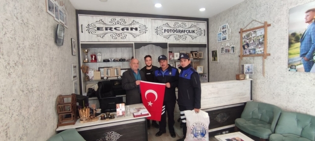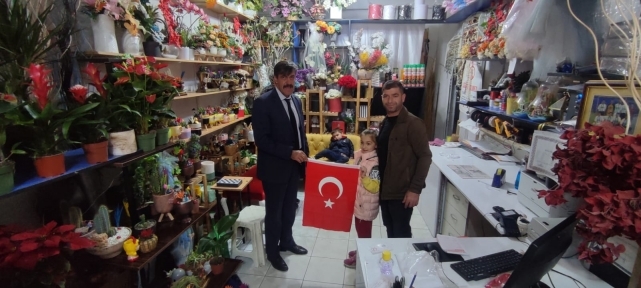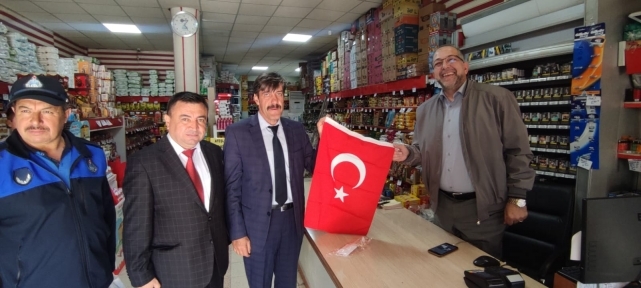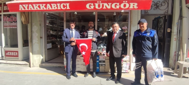 Şanlı Türk Bayrağımız esnaflarımızın dükkanlarına asması için Belediye Başkan Yardımcımız Şemsettin Er ve Zabıta Müdürümüz Hasan Hüseyin Sarı tarafından esnaflarımıza takdim edildi.