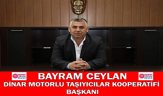 Dinar Motorlu Taşıyıcılar Kooperatifi Başkanı Bayram Ceylan 10 Kasım Atatürk'ü anma günü dolayısıyla bir mesaj yayımladı. Başkan Ceylan mesajında ''Her 10 Kasım'da olduğu gibi bu 10 Kasım'da da Atatürk'e olan bağlılığımızı ve sevgimizi ortak düşünce ve duygularla bir kez daha dile getiriyor, büyük önderimizi özlemle anıyoruz" dedi.