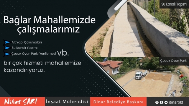 Belediye olarak vatandaşlarımıza en iyi şekilde hizmet vermeye devam ettiklerine değinen Dinar Belediye Başkanımız Nihat Sarı, “Tüm mahallelerimizde gerekli çalışmaları gerçekleştiriyoruz. Vatandaşlarımızın talep ve isteklerine imkanlarımız dahilinde en iyi şekilde çözüm üretiyoruz. Amacımız vatandaşlarımızın daha modern ve yaşanabilir bir ilçede yaşamalarını sağlamaktır.” dedi.