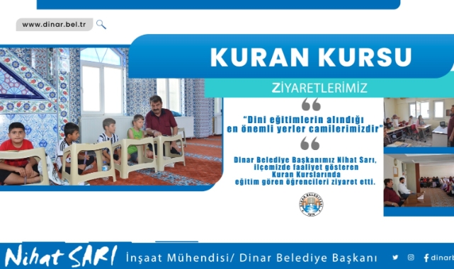Dinar Belediye Başkanımız Nihat Sarı, ilçemizde faaliyet gösteren Kuran Kurslarında eğitim gören öğrencileri ziyaret etti.
