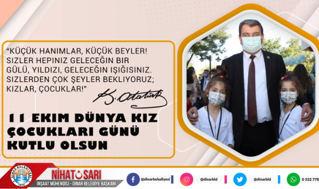 Dinar Belediye Başkanımız Nihat Sarı, 11 Ekim Dünya Kız Çocukları Günü nedeniyle bir mesaj yayımladı.