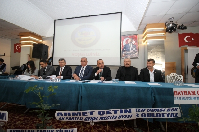 Dinar İlçe Kaymakamı Kemal Duru katıldığı genel kurul toplantısında bir konuşma gerçekleştirerek şunları kaydetti, “Genel kurulunuza davet ettiğiniz için mutlu olduğumu ifade edeyim. Çünkü hep birlikte esnaflarımızla, sanatkarlarımızla, bir arada olma fırsatını bulduk. Yüz yıllardır Ahi Evran Veli hazretlerinin düsturuyla, bereketiyle, helali gözeterek, çalışkanlık ve yardımlaşmayla, ve milletine devletine sadakatle bağlı kalarak, ahlakıyla iş yapma düsturunu edinmiş esnaflarımız ekonominin her zaman olduğu gibi can damarlarından bir tanesi. Dinarımızda da geniş bir esnaf ailemizle, camiamızla birlikte olduğum için mutlu oldum ve gurur duydum” dedi.