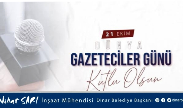 Dinar Belediye Başkanımız Nihat Sarı, 21 Ekim Dünya Gazeteciler Günü nedeniyle bir kutlama mesajı yayımladı.Belediye Başkanımız Nihat Sarı Mesajında; “Toplumun gözü kulağı, sesi olan; vatandaşlarımızın haber alma hakları adına fedakârlık içerisinde çalışan basın mensuplarımız