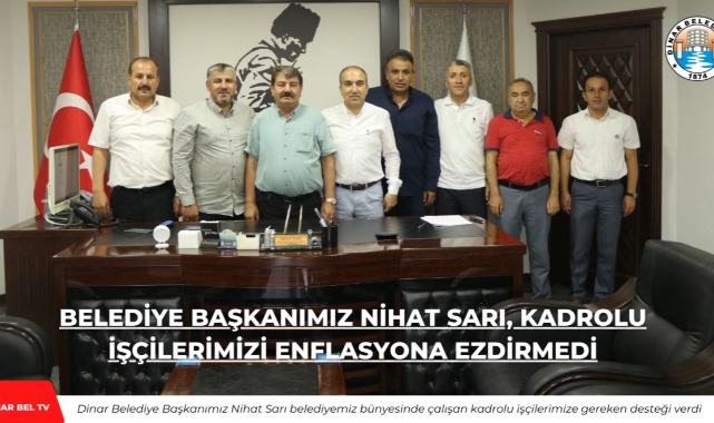Dinar Belediye Başkanımız Nihat Sarı, belediye personellerimizin yanında olmaya ve destek vermeye devam ediyor.“İŞÇİLERİMİZİ ENFLASYONA KARŞI EZDİRMEDİK”