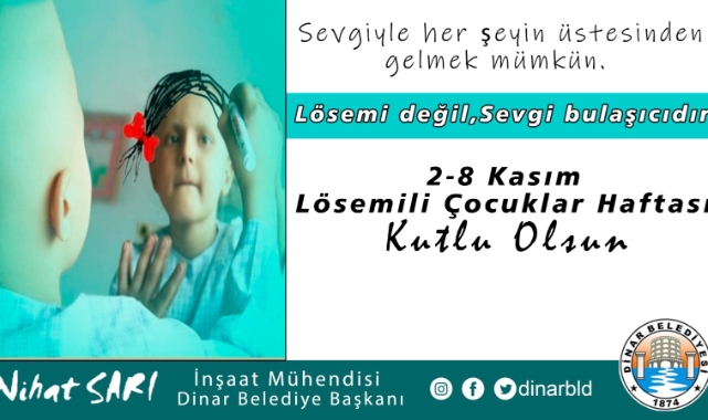 Dinar Belediye Başkanımız Nihat Sarı 2-8 Kasım Lösemili Çocuklar Haftası dolayısıyla bir mesaj yayımladı.