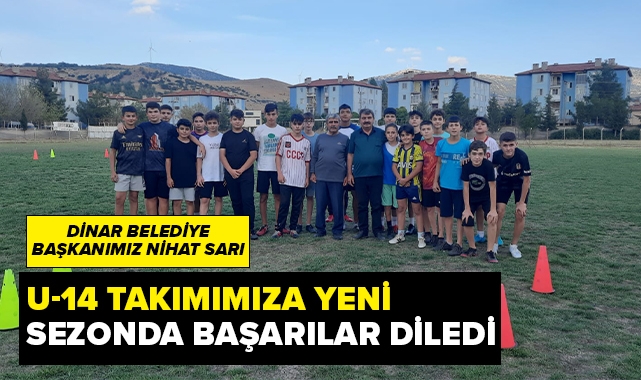 Dinar Belediye Başkanımız Nihat Sarı bu sezon U-14 Liginde oynayacak olan Dinar Belediye Sporumuzun 14 yaş takımı ile antrenmanda bir araya geldi.