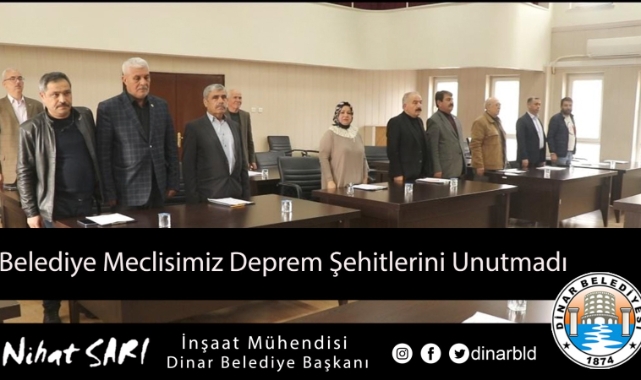 Dinar Belediye Başkanımız Nihat Sarı başkanlığında gerçekleşen Mart Ayı Olağan Meclis toplantısı öncesinde Dinar Belediye Başkanımız Nihat Sarı ve belediye meclis üyelerimiz ülkemizde yaşanan üzücü depremlerde hayatını kaybeden vatandaşlarımız için bir dakikalık saygı duruşunda bulundu.Akabinde ise Kur’an-ı Kerim tilaveti gerçekleştirilerek, deprem şehitlerimiz dualar ile anıldı.