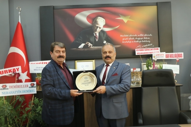 Dinar Belediye Başkanımız Nihat Sarı, 31 Mart 2019 tarihinde yapılan Yerel Seçimlerde Belediye meclis üyesi olarak seçilerek bugüne kadar birlik ve beraberlik içerisinde ilçemizde yaptıkları hizmetlerin anısına Ticaret ve Sanayi Odası Başkanı Veli Özcan'a teşekkür ederek, ilçemize yapılacak olan faydalı tüm hizmetlerde yanında ve destekçisi olduğunu belirtip, teşekkür plaketini takdim etti.