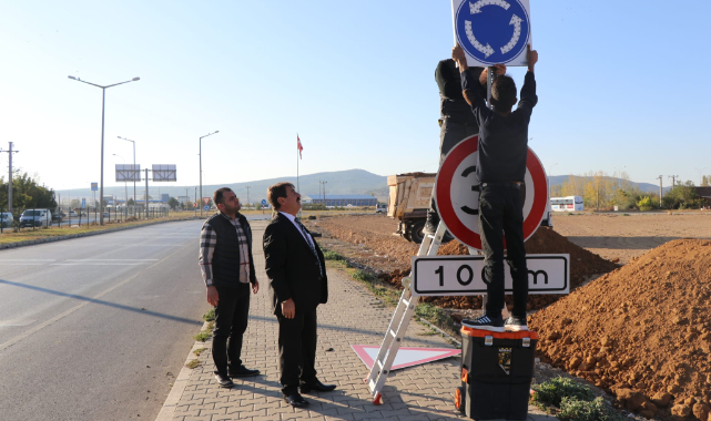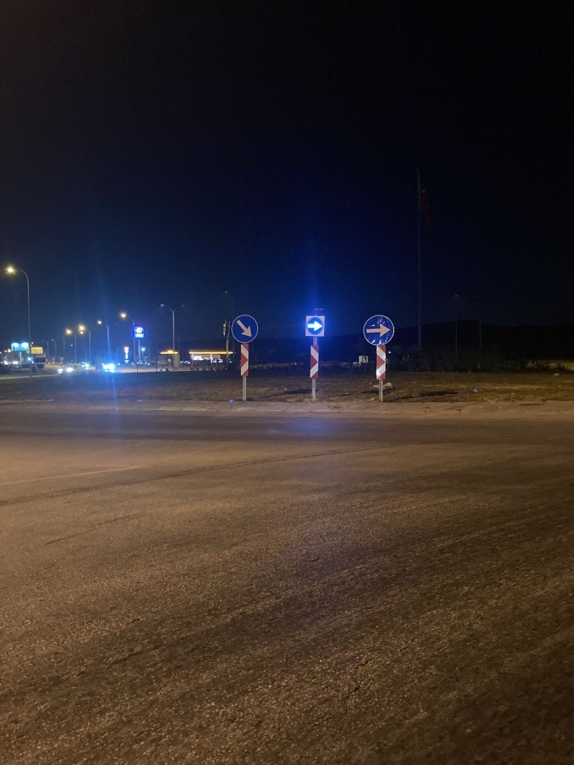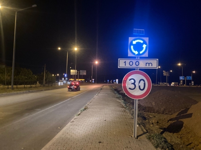 Yapılan çalışma kapsamında kavşağın 100 metre gerisine ileride kavşak var uyarı levhası takılırken kavşağın olduğu noktaya ise ışıklı sağa mecburi yön uyarı levhası takıldı.