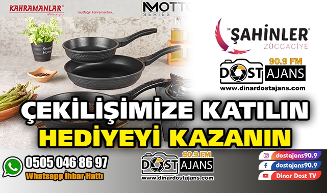 Dinar'da uzun yıllardır hizmet veren değerli markamız Şahinler Züccaciye ve dinar Dost Ajans olarak birlikte hazırladığımız çekilişimize katılın 489 TL Değerindeki Kahramanlar Marka Döküm Tava Setini kazanın! Kahramanlar Motto 3'lü Tava Seti Kazanmanız İçin Yapmanız Gerekenler;