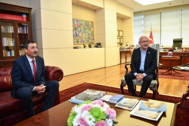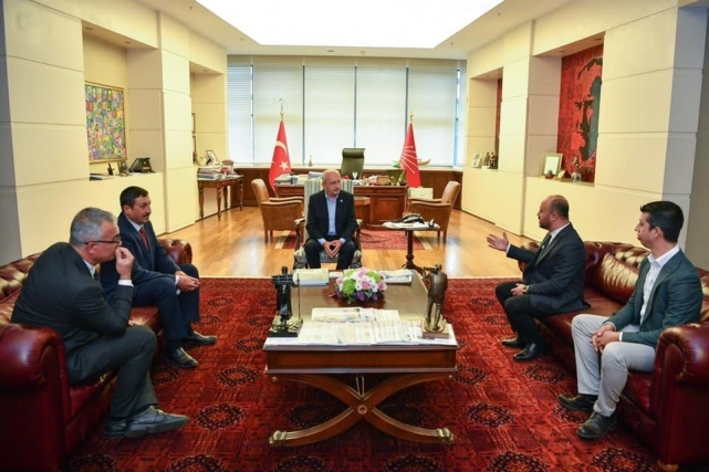 Dazkırı Belediye Başkanı İsmail TAYLAN, Dereçine Belediye Başkanı Ömer YILDIZ ve Yeşilçiftlik Belediye Başkanı Mehmet Ali SAKAL ile birlikte Cumhuriyet Halk Partisi Genel Merkezinde Genel Başkan Sayın Kemal KILIÇDAROĞLU'nu ziyaret edip projeler hakkında görüş alışverişinde bulundular. dazkırı Belediye Başkanı İsmail TAYLAN misafirperverliğinden dolayı Sayın Kemal KILIÇDAROĞLU'na teşekkür etti.