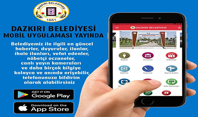 Dazkırı Belediye Başkanı İsmail TAYLAN’ın göreve geldiği günden bugüne Dazkırı belediyesi olarak hemşehrilerimizin belediyemize ulaşımını kolaylaştırmak ve daha etkin hizmet edebilmenin alternatifini geliştirmeye çalıştık. Şimdi de telefonlarınıza yükleyeceğiniz “Dazkırı Belediyesi” uygulaması ile belediyemizden anında haberdar olup, istek ve önerilerinizi bizlere ulaştırabileceksiniz. Belediye Başkanı İsmail TAYLAN “Bu güzel uygulamanın hepimize hayırlı olmasını dilerim…” dedi.