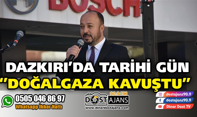 Dazkırı'da uzun yıllardır beklediğimiz, Belediye Başkanımız İsmail TAYLAN’ın ilçemize gelmesi için büyük çaba harcadığı, çevreci, ekonomik ve konforlu olan yakıta doğalgaza bugün kavuştuk.Vali Doç.Dr. Kübra Güran Yiğitbaşı, CHP Milletvekili Burcu Köksal, Ak Parti Milletvekilleri Ali Özkaya, İbrahim Yurdunuseven, Kaymakam Zeliha Uz, İl ve İlçe Başkanları, ilçe protokolü ve hemşehrilerimizin katıldığı Doğalgaz gaz verme törenimizde Belediye Başkanımız “Gelmesi için destek olan herkese minnettarım, bu güzel günümüzde bizleri yalnız bırakmayan başta sevgili hemşehrilerim olmak üzere il protokolümüze çok çok teşekkür ediyorum. Memleketimize hayırlı olsun” dedi. DinarDostAjans90.9 - Oğuzhan UYSAL