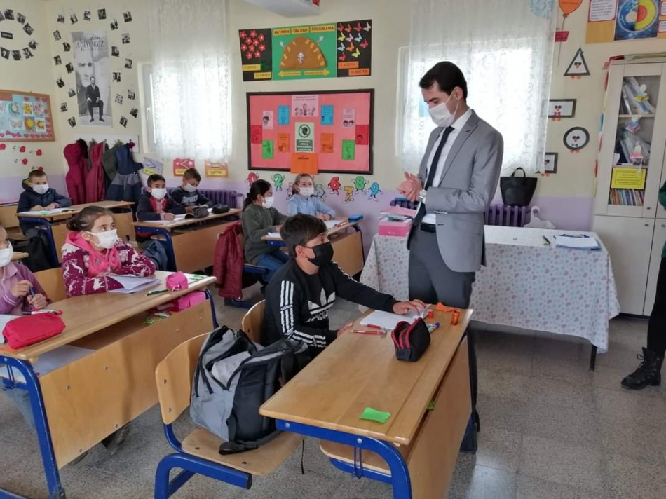 Yüz yüze eğitim öğretime açılan okullardan Karaağaçkuyusu okulunda incelemelerde bulunan ve okul yönetiminden bilgi alan Kaymakamız, sınıfları gezerek öğrencilerle bir süre sohbet etti.
