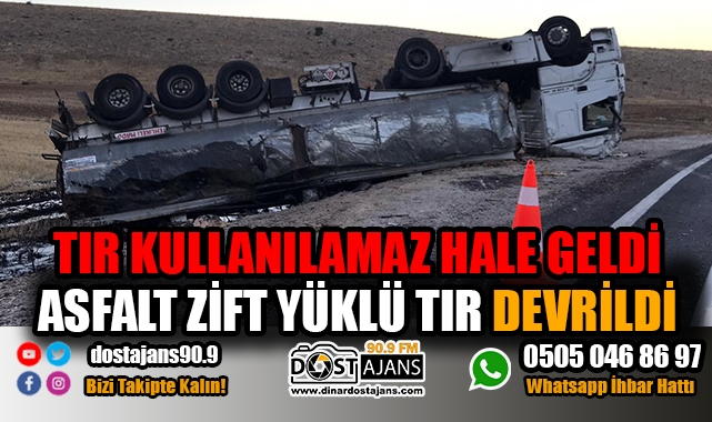 DİNAR'DA ASFALT ZİFT YÜKLÜ TIR DEVRİLDİ