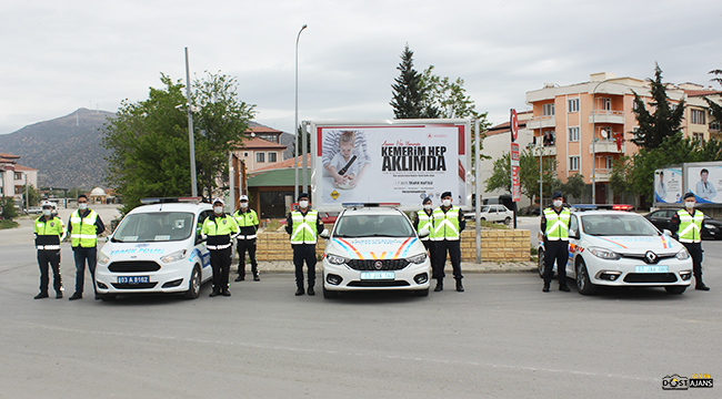 Dinar İlçe Emniyet Müdürlüğüne bağlı Trafik ekipleri ve Dinar İlçe Jandarma Komutanlığına Bağlı Trafik ekipleri"Annem Hep Yanımda Kemerim Hep Aklımda" temalı konuyu işleyerek tüm annelerin anneler gününü kutladı.