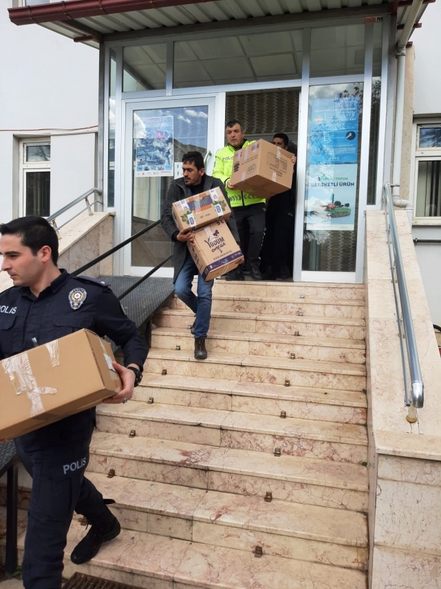 Dinar Emniyet Müdürlüğü personeli tarafından hazırlanan yardım kolileri depremzedelere ulaştırılmak üzere yola çıktı.