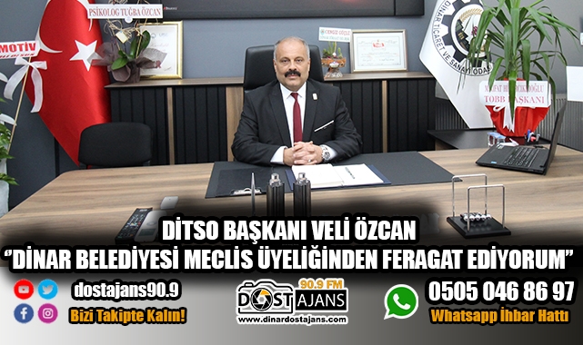 Dinar Ticaret ve Sanayi Odası Başkanı Veli Özcan Dinar Belediyesi Meclis üyeliğinden feragat ettiğini belirten bir açıklama yaptı.