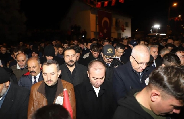 Dinar Ticaret ve Sanayi Odası Yönetim Kurulu Başkanı Veli Özcan Başmakçılı Şehidimiz Hakan Köroğlu'nun cenaze törenine katıldı.