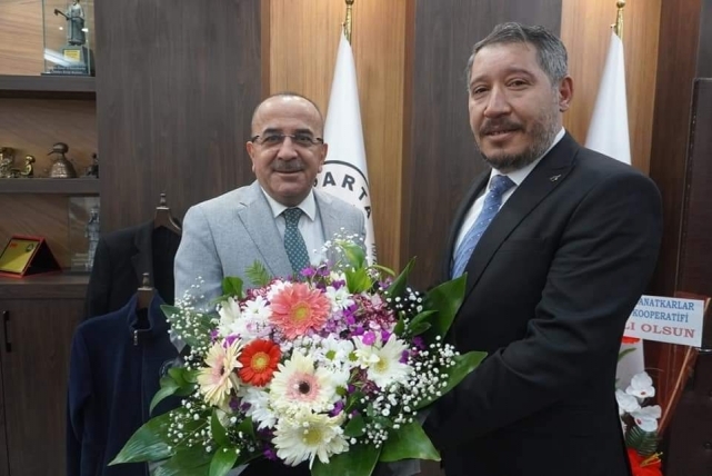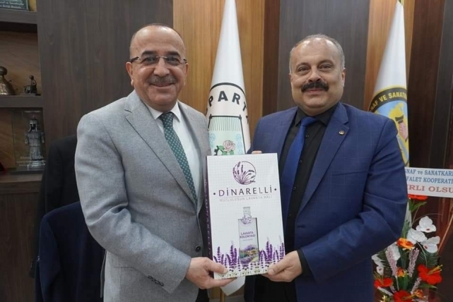 Dinar Ticaret ve Sanayi Odası Yönetim Kurulu Başkanı Veli ÖZCAN, Meclis Başkanı Veysel TOPÇU, , Dinar Esnaf ve Sanatkârlar Odası Başkanı Sabri Can BEKLE, Dinar Ziraat Odası Başkanı Cengiz GÜÇLÜ, Sebzeciler Odası Başkanı Mustafa GÖKÇE ve Yönetim Kurulu Üyeleri ile STK üyelerinin katılımı ile Yeniden 6. Bölge Esnaf Kredi ve Kefalet Bölge Birlik Başkanlığına seçilen Ahmet TURAL’ a hayırlı olsun ziyaretinde bulunuldu. Ziyarette bölgemiz ve Isparta ilimiz hakkında ekonomik istişarelerde bulunuldu.Dinar Ticaret ve Sanayi Odası Başkanı Veli Özcan ''Misafirperverliklerinden dolayı TURAL ve Yönetimine teşekkür ederiz'' dedi.