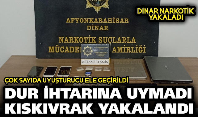 Dinar Narkotik Suçlarla Mücadele Büro Amirliğimizce şüphe üzerine durdurulmak istenilen ve dur ihtarına uymayarak yaya vaziyette kaçmaya çalışan şüpheli dinar narkotik ekipleri tarafından yakalandı.A.M.B isimli şüphelinin kaçmaya çalıştığı güzergahta ve ikamet aramasında;