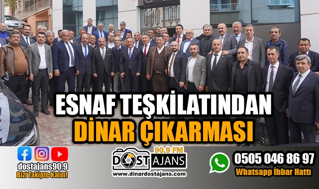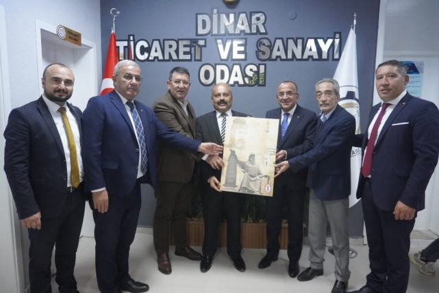 Isparta, Burdur, Antalya ve Afyon Esnaf Odaları Birliği başkanları, oda ve kooperatif başkanlarıyla birlikte Dinar Ticaret ve Sanayi Odası, Dinar Belediyesi ve Dinar Ziraat Odası’nı ziyaret etti. İlçe esnafıyla bir araya geldi. Batı Akdeniz illerinin esnaf teşkilatları Dinar’a çıkarma yaptı. Birlik Başkanları ile, oda ve kooperatif başkanlarından oluşan kalabalık bir heyet, Dinar ilçesinde çeşitli ziyaretlerde bulundu. Ziyaret programında ilk durak Dinar Ticaret ve Sanayi Odası oldu. Seçimlerde başkan seçilen Veli Özcan ve yönetimiyle Meclis Başkanı seçilen Veysel Topçu’ya hayırlı olsun ziyareti gerçekleştirildi. MANEVİ DESTEĞİNİZ BİZİM İÇİN ÇOK ÖNEMLİ