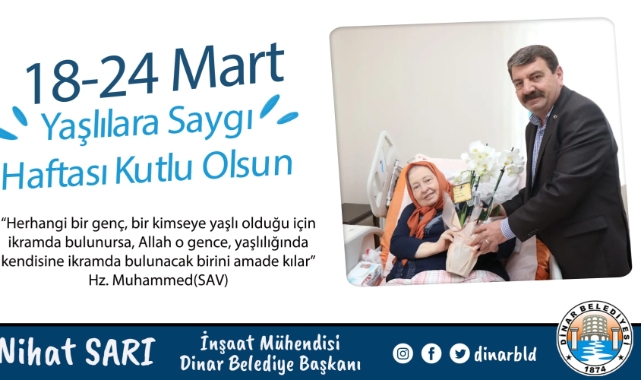 Dinar Belediye Başkanımız Nihat Sarı, her yıl 18 – 24 Mart arasında kutlanan “Yaşlılara Saygı Haftası” dolayısıyla bir mesaj yayımladı.