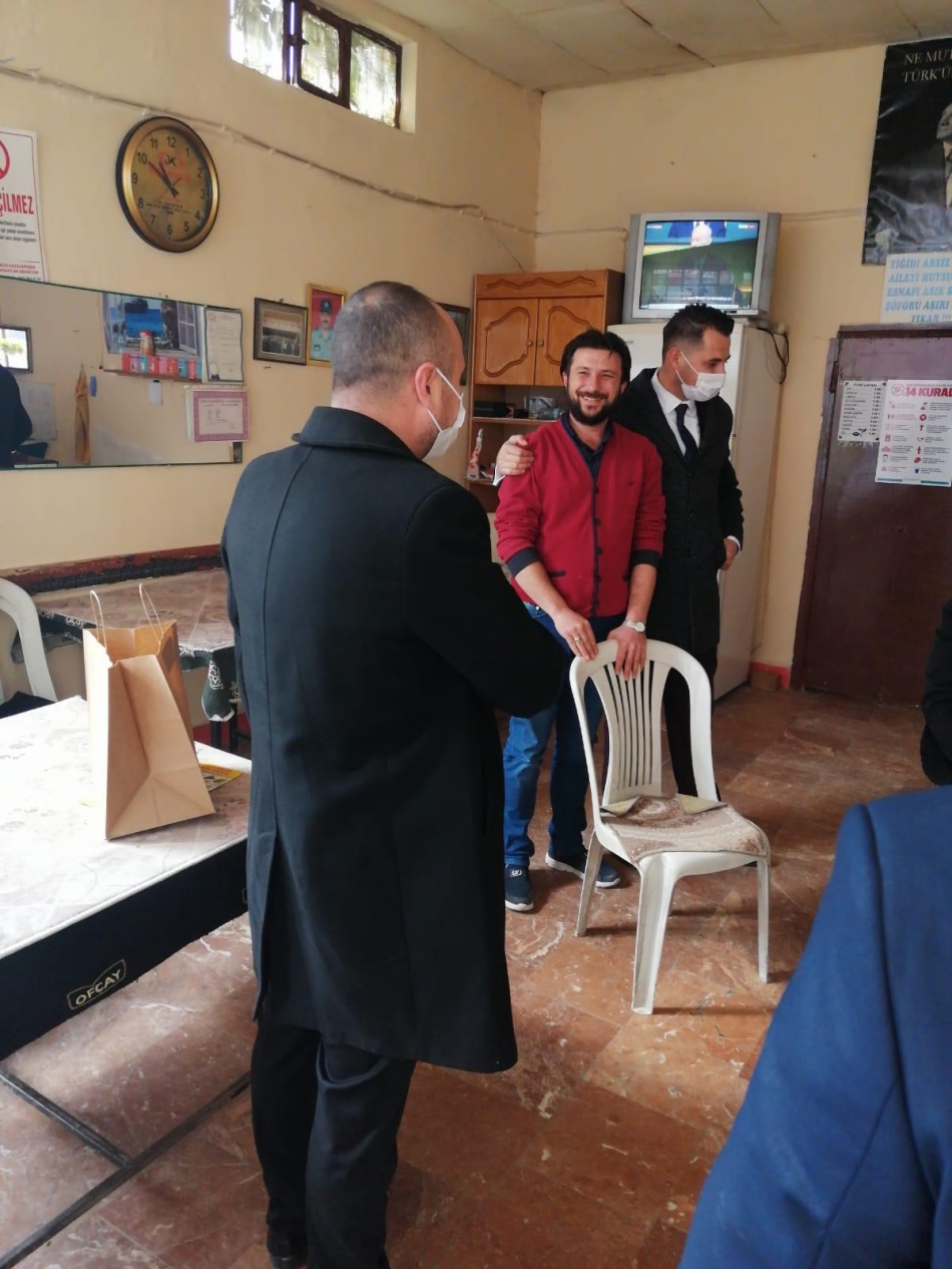 Dinar Esnaf ve Sanatkarlar Odası Başkanı Sabri Can Bekle Normalleşme Sürecinin Başlamısıyla İlçemizdeki Kahve, Cafe ve Kıraathanelere Ziyarette Bulunup İlk Çaylar Bizden Diyerek Çay ve Şeker İkramında Bulundu.