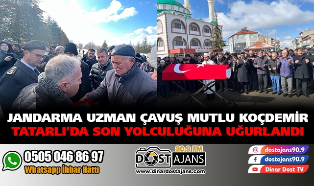 Depremde vefat eden Tatarlı kasabası nüfusuna kayıtlı Jandarma Uzman Çavuş Mutlu Koçdemir için Tatarlı’da Askeri Tören düzenlendi.Kaymakamımız Duru ve Dinar Belediye Başkanımız Nihat Sarı Törene katılarak Cenaze namazını kıldı ve Mutlu Koçdemir’in ailesine başsağlığı diledi. Jandarma Uzman Çavuş Mutlu Koçdemir dualarla son yolculuğuna uğurlanarak köy mezarlığına defnedildi. Törene Kaymakamımız Kemal Duru, Dinar Belediye Başkanımız Nihat Sarı, İl Jandarma Komutanı Jandarma Albay Yılmaz Kırgel, İlçe Jandarma Komutanı Binbaşı Necip Kacar, İlçe Emniyet Müdürü Nihat Pulat, Belde Belediye Başkanları, Bölgemiz Oda Başkanları, Kurum Müdürleri ve çok sayıda vatandaş katıldı. DinarDostAjans90.9 - Oğuzhan Uysal