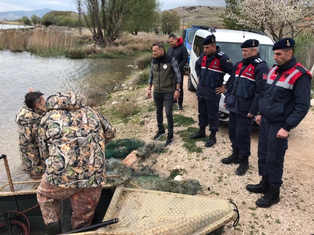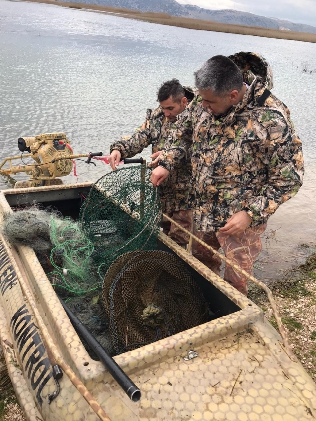 Karakuyu Gölü Denetlendi Kaçak Ağ ve Pinterler İmha Edildi