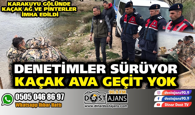 Dinar Karakuyu Gölünde ekibiyle birlikte kaçak avla mücadele kapsamında denetime çıkan Dinar İlçe Tarım ve Orman Müdürü Yavuz Karakuyu ''Doğal yaşamı koruma adına faaliyetlerimiz devam edecektir'' dedi.
