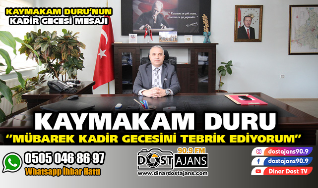 Dinar Kaymakamı Kemal DURU Kadir Gecesi dolayısıyla bir mesaj yayımladı.