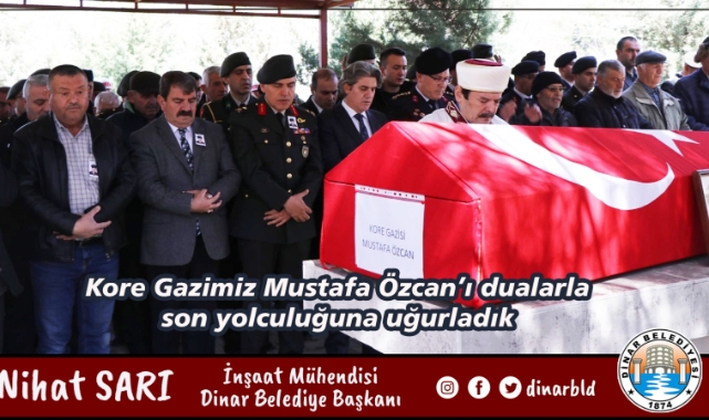 Dinar Belediye Başkanımız Nihat Sarı, dün vefat eden Kore Gazimiz Mustafa Özcan'ın İncesu köyünde düzenlenen cenaze törenine katılarak ailesi ve yakınlarına başsağlığı dileklerini iletip acılarını paylaştı. Dinar Belediye Başkanımız Nihat Sarı, protokol üyeleri, Şehit ve Gazi dernek temsilcileri, askerî erkan ve vatandaşların katılımıyla İncesu köyü camisinde alınan helalliğin ardından köy mezarlığında düzenlenen cenaze namazıyla birlikte Kore Gazimiz Mustafa Özcan son yolculuğuna uğurlandı.