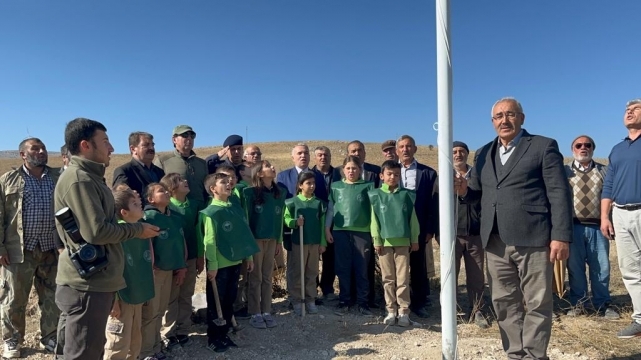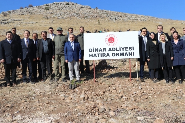 Ağaçlandırma etkinliğinin yapıldığı tepede bulunan Şanlı Türk Bayrağımız yenilenerek İstiklal Marşımızın okunması eşliğinde göndere çekildi.“DİNAR ADLİYESİ HATIRA ORMANI AĞAÇLANDIRMA ETKİNLİĞİNE KATILDIK”