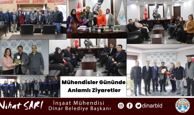 Gelen misafirlerimizin tebriklerini kabul ederek bir süre sohbet eden Dinar Belediye Başkanımız Nihat Sarı, bu anlamlı günde hatırlanması dolayısıyla yaşadığı mutluluğu dile getirerek, sosyal medya üzerinden mesaj atarak, arayarak, çiçek göndererek ve ziyaretine gelerek Mühendisler gününü kutlayan herkese teşekkür ettiğini belirtip, ilçemize birlik ve beraberlik içerisinde mühendis bir belediye başkanı olarak güzel hizmetler yapmaya devam edeceğini ifade etti.