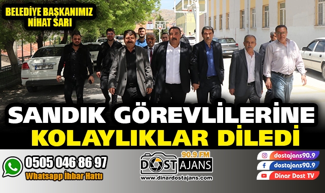 Dinar Belediye Başkanımız Nihat Sarı, 14 Mayıs Cumhurbaşkanlığı ve 28.Dönem Milletvekilliği Seçimleri dolayısıyla ilçemizde sandıklarda görevli olan personellere kolaylıklar diledi. Dinar Belediye Başkanımız Nihat Sarı, sandıkları tek tek ziyaret ederek, görevlilere kolaylıklar dileyip, oy kullanmaya gelen vatandaşlarımız ile de görüşmeyi ihmal etmedi.
