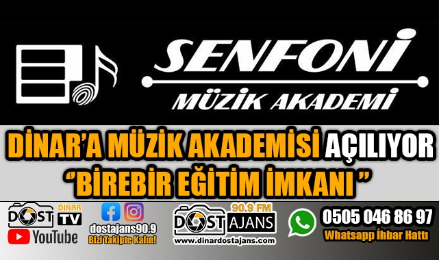 Dinar Dost Ajans 90,9 olarak Senfoni Müzik Akademi kurucuları Şive Hanım ve Bora beyle özel olarak yaptığımız görüşmede edindiğimiz bilgiye göre, Senfoni Müzik Akademi dinar Dörtyol Mahallesi Isparta Caddesinde yakın bir zamanda hizmete girecek.
