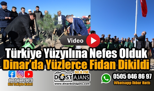 Türkiye Yüzyılına Nefes projesi kapsamında Dinar’a bağlı Afşar Köyünde 11 Kasım Milli Ağaçlandırma Günü etkinlikleri düzenlendi. Dinar Orman İşletme Müdürlüğü tarafından temin edilen çam fidanları toprakla buluşturuldu. Afşar Köylülerinin de katıldığı fidan dikme etkinliğinde davetlilere yöreye özgü katmer, gözleme ve ayran ikram edildi. Burada köylü vatandaşlarla yakından ilgilenen Dinar Kaymakamı Kemal Duru, Afşar köylülerinin diktikleri fidanlar nedeniyle tebrik etti. Buradaki programın akabinde ise Dinar Sandıklı karayolu üzerinde bulunan bir bölgeye Adliye Ormanı kuruldu. Bu bölgeye de birçok çam fidanı dikildi. Gerçekleşen çam fidanı dikme programına Dinar Kaymakamı Kemal Duru, Belediye Başkanı Nihat Sarı, Tatarlı Belediye Başkanı Şuayyup Çiçek, Cumhuriyet Başsavcısı Emre Vurmaz, Ağır Ceza Mahkemesi Başkanı Muhammet Fatih Tercan, Dinar İlçe Jandarma Komutanı Binbaşı Necip Kacar, Emniyet Müdürü Nihat Pulat, Dinar Pancar Kop. Başkanı Veysel Topçu, Dinar Ticaret ve Sanayi Odası Başkanı Veli Özcan ve resmi kurum müdürleri katıldı. DinarDostAjans90.9Oğuzhan Uysal
