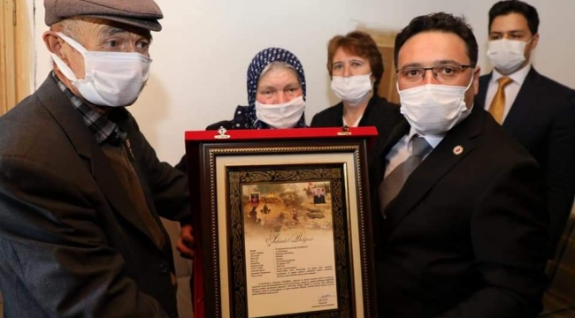 Suriye’de şehit düşen J. Asb. Kd. Bçvş. Süleyman Demirel’in ailesini ziyaret eden Vali Gökmen Çiçek, Şehadet Belgesi’ni takdim etti.