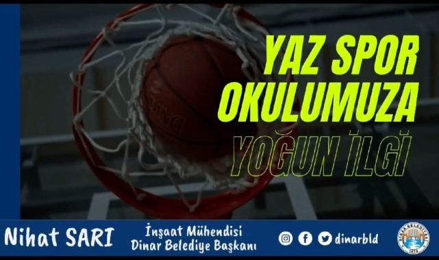 Dinar Belediye Başkanımız Nihat Sarı’nın destekleriyle her yıl olduğu gibi bu yılda devam eden Yaz Spor Okulu kurslarımıza çocuklarımız yoğun ilgi gösterdi. 7-14 Yaş grubu çocuklarımıza yönelik düzenlenen kurslarımızda yaklaşık 500 öğrencimize eğitmenlerimiz tarafından futbol, voleybol ve basketbol branşları başta olmak üzere birçok branşta eğitimler veriliyor.
